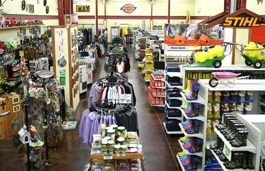 The retail store carries a wide variety of home and farm products including livestock, pet, welding, automotive, lawn and garden, plumbing, and electrical supplies. The store is also an authorized STIHL dealer.