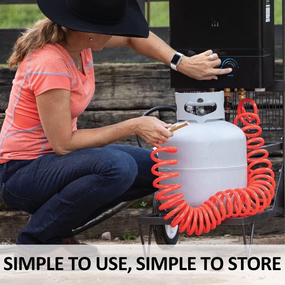 Complete with hose, nozzle, and regulator, this easy-to-use portable water heater is perfect for washing horses, cleaning equipment, or rinsing pets year-round.