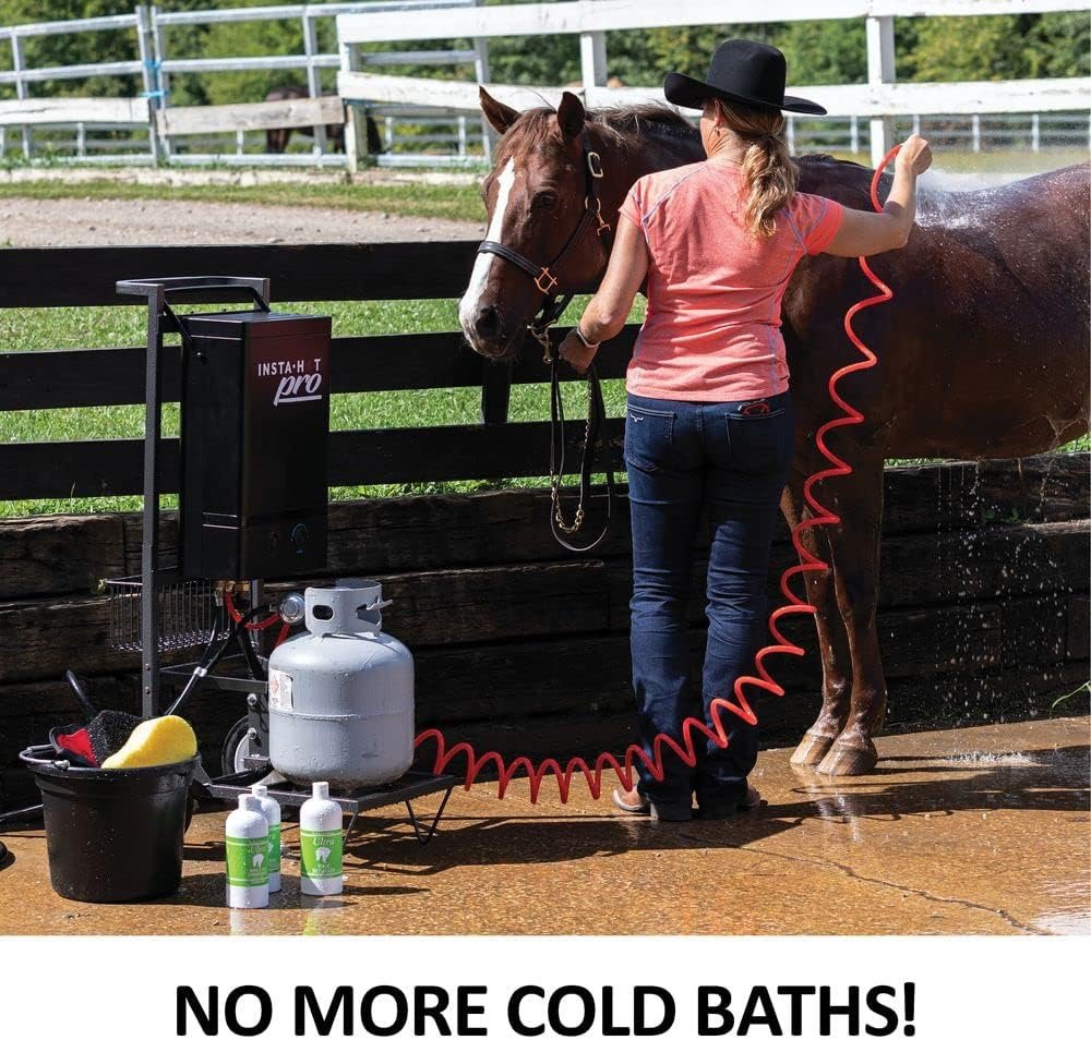 Enjoy warm, soothing baths for your horse wherever you go with the Insta-Hot Portable Horse Washing System. Designed for comfort and convenience, this lightweight propane-powered unit heats water up to 40°F warmer than the source temperature—no electricity required.